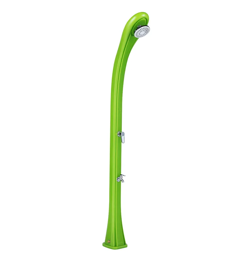 Utilisant l’énergie solaire, cette douche vous permet de chauffer l’eau contenue à l’intérieur sans avoir besoin d’une quelconque intervention. Le réservoir se situe sur l’intégralité de la hauteur de la douche pour vous assurer une chauffe dès les premiers jours d’exposition au soleil. Il vous suffira simplement de raccorder votre douche à un tuyau d’eau froide pour ainsi pouvoir gérer la température de l’eau grâce au mitigeur. Lorsque vous décidez d’investir dans une douche solaire, vous pouvez préserver l’eau de votre bassin et limiter l’utilisation de produits de traitement.