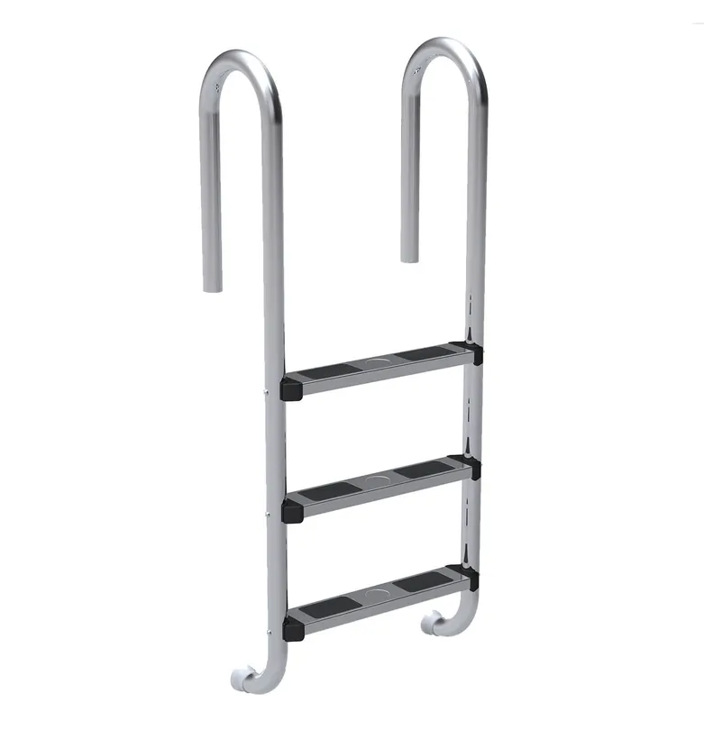 | Echelle intérieure en inox composée de 3 marches | Escalier extérieur en bois composé de 4 marches |
