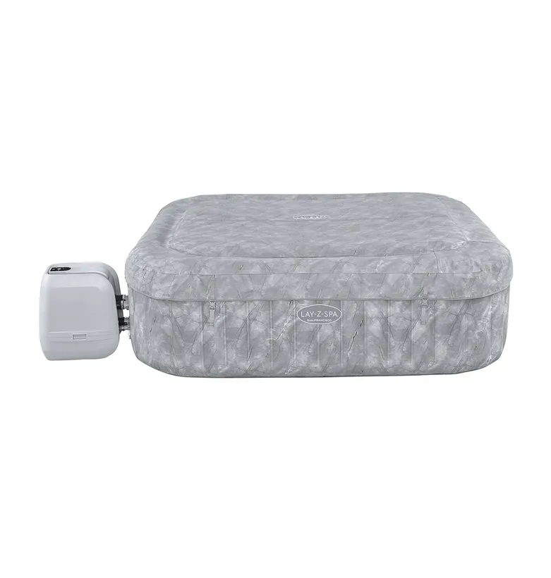 Envie de profiter d’un massage de qualité pour un prix abordable ? Choisissez la qualité Lay-Z Spa en optant pour le spa carré San Francisco. Bestway a fait en sorte de créer une gamme de spa aux critères qualité élevés pour vous satisfaire au maximum. Au programme pour le spa 7 places San Francisco, une qualité de massage optimale avec pas moins de 180 buses de massage et 10 hydrojets directionnels. Utilisable en intérieur comme en extérieur, été comme hiver, le spa à jets San Francisco dispose de la technologie Freezeshield, qui protège les composants internes du jacuzzi en cas de gel. Le confort apporté par la structure en Duraplus vous rappelera vos longues siestes à la plage. tandis que les plus technophiles d’entre vous, apprécieront le fait de pouvoir contrôler le spa à distance à l’aide d’une application dédiée, Bestway Smart Hub.